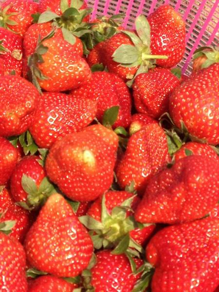 坐在车里向外望,一片片田园绿地闪过,推开车窗,青草的气息扑面而来。车行约一小时后,成片的草莓园映入眼帘。仔细看去,一垄一垄的草莓地排着整齐的队伍迎接我们的到来,鲜红的草莓调皮的从绿油油的叶子中探出头来,与我们热情招手。看着它们,午后的慵懒瞬时一扫而光。