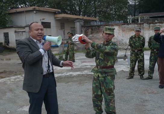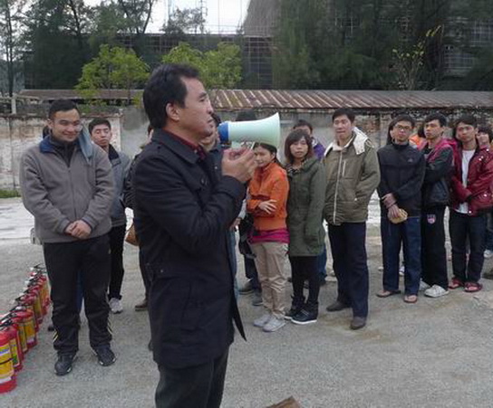 在安全疏散地点,周志魁书记、刘汉明副厂长分别做了讲话,对这次疏散演练的成功举行给予了高度评价,并告诫员工时刻都要有消防的意识,要掌握灭火、逃火的技能,这样才能在火灾中保护自己,保护别人,拯救生命。随后“逃生”员工在保卫部康队长的带领下,组织了消防培训与现场演练。这次消防培训有4个内容:消防水管的拼接与消防栓的使用、防毒面具的佩戴、用麻布袋扑灭小规模起火源、灭火器的使用方法。参加这次演练的除了我厂住宿员工,还有总厂职工饭堂的员工。本着“守土有责”的安全原则,我厂将饭堂消防工作作为重点纳入了今年的演练内容。