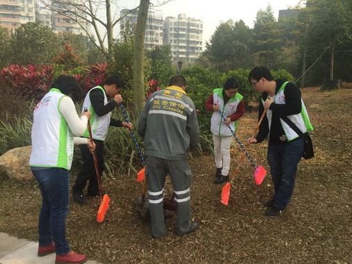 2015年2月12日,suncitygroup太阳总厂团委积极响应团市委“打造干净整洁平安有序美丽家园,积极投身城市文明建设”的号召,组织了15名团员青年志愿者联合suncitygroup太阳化学药厂团委、同和街道办团工委在陈田花园开展“美丽家园·青年新春志愿行”清洁大扫除活动。