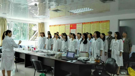 更值得一提的是,彩排跟比赛那天的事情。彩排那天,分装班有3名员工要参与排练,该车间主任赖碧浩通过合理安排生产时间,并亲自上阵分装生产,为参加排练的员工争取充足的时间。彩排一结束,我们找到自己跟别的队伍的差距,部门工会负责人于娟当机立断召集合唱队的人员马上再进行排练,赖主任让参加排练的人员放心参与排练,想方设法保质保量完成生产。“放我的真心在您的手心”,赖主任,我们被你的所作所为感动,我们为你的这种团队精神所感动………