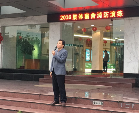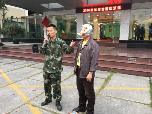 下午4时50分,保卫部经警在宿舍点燃狼烟,宿舍瞬间被呛鼻的浓浓烟雾所笼罩,值班宿管员迅速按响警报铃声,宿舍员工在各层楼长的指引下纷纷用湿毛巾捂住口和鼻子有序地逃离宿舍楼,前往指定的疏散集合点——办公楼正门空地。住宿人员在不到10分钟的时间里便顺利到达集中地点,随后,周志魁书记在集中地点发表讲话。周书记强调,近年来住宿人员逐渐增多,集体宿舍的消防安全尤为重要,住宿员工必须遵守宿舍的管理规定,重视用电安全,严禁使用违规电器,共同维护舒适安全的居住环境。