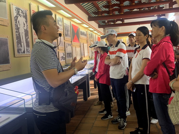 活动的第二站我们来到了海丰的红场红宫旧址、海丰总农会旧址新山村及海丰烈士陵园。红场红宫旧址享有“小莫斯科”之称,上个世纪的二十年代,“农民运动大王”彭湃在此领导了轰轰烈烈的海陆丰农民运动和革命斗争,创建了中国十三块革命根据地之一的海陆丰革命根据地,缔造了中国第一个县级苏维埃政府。在红宫红场纪念馆,党员们详细听取了海陆丰农民运动、工人运动的光辉历史,以及彭湃烈士等多位海陆丰农民运动、工人运动革命先驱的光辉事迹,其中彭湃同志一次性烧毁5000余亩田契的自我革命精神深深震撼了在场的党员们。在海丰烈士陵园的烈士纪念碑前,纪委书记兼工会主席蔡淑君同志带领全体党员庄严举起右手,重温入党誓词,激发广大党员的使命感、责任感和自豪感,使全体党员在思想上和灵魂上都接受了一次深刻的洗礼。