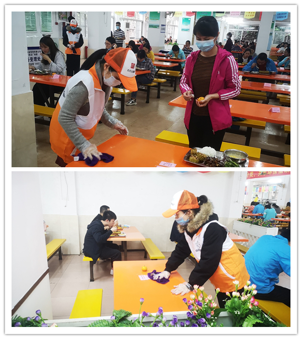 从3月9日开始,总厂已全面复工,饭堂用餐人数有所增加。为做好疫情防控工作,总厂党委号召各党支部组织党员、团员志愿者开展职工饭堂值守工作。作为首个轮值的支部,第八党支部组织了六名党员、团员分两批在饭堂负责排队、就餐指引和环境卫生等工作,用实际行动保障总厂职工的就餐安全。