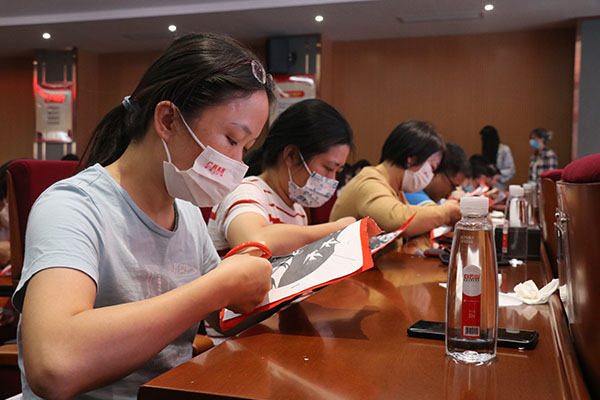 此次活动邀请到了曾任广东省博物馆专业剪纸老师马嘉忆到现场授课,课堂上,老师通过深入浅出、理论与实践相结合的方式,向职工展现了剪纸的文化内涵和实践技巧。紧接着,马老师带领大家开始了爱党剪纸作品的创作,通过老师的细致指导,一面面红霞般的五星红旗在大家的手中慢慢浮现,从一开始的生疏到逐渐得心应手,大家脸上的笑容随着作品的完整呈现也慢慢绽放开来。一把把普普通通的剪刀,一张张象征中国红的剪纸,融合着每一位职工对党和祖国的感恩和热爱,最终结合成一幅幅生动的剪纸作品。